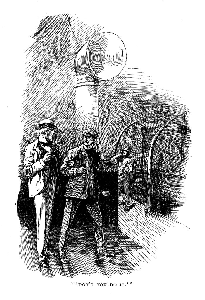 Involuntarily I obeyed him, and we stood in the shadow of the great funnel. The captain had reached the rail.