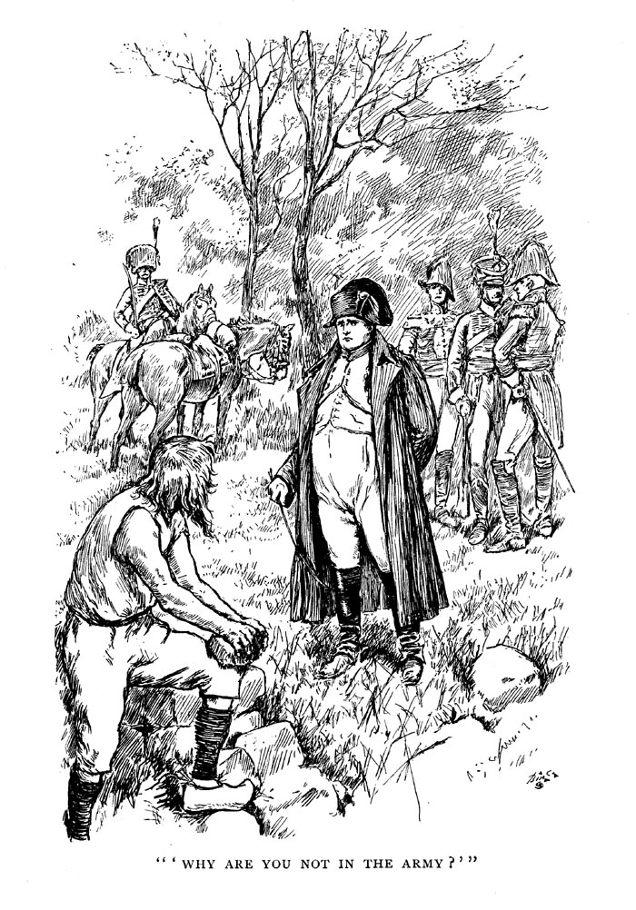 "My eyes were accustomed to the darkness, and it was starlight. I walked along the side of the building, examining it carefully, and I soon found a little door in the wall. As I stood for a few moments before this door, it suddenly opened, and in front of me stood a big soldier. He wore a wide hat and a little sword, and evidently was not surprised to see me. I thought it well, however, to speak, and I said: 'Could you give a mouthful of supper to a--'