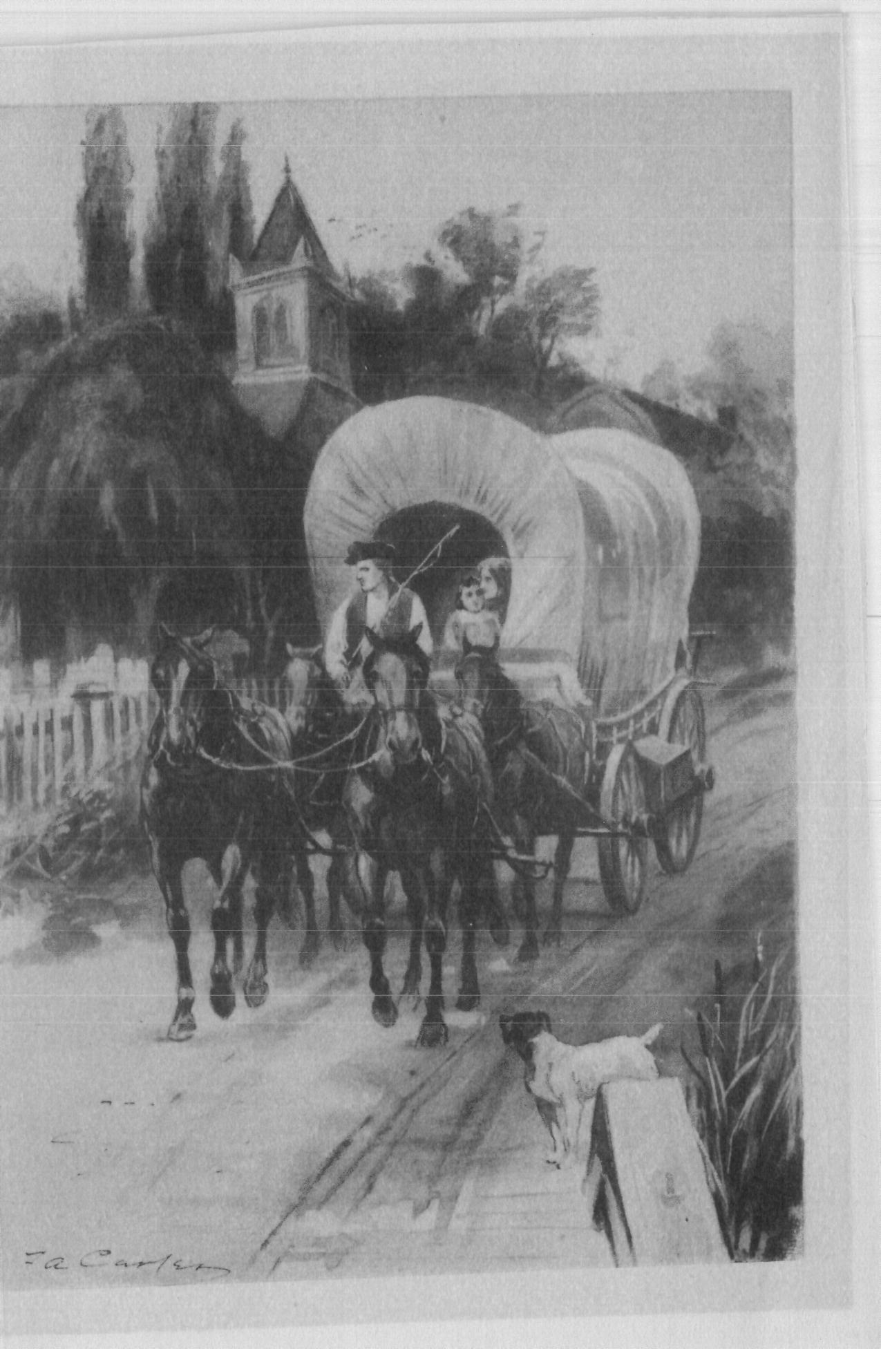 Their road was at first, comparatively smooth and their journey pleasant. Their progress was interrupted by divers little incidents; while the continual changes in the appearance of the country around them, and the anticipation of what was to come, prevented those feelings of despondency, which might otherwise have arisen on leaving a much loved home. When the roads became bad or hilly, the family quit the wagon and trudged along on foot, the mother carrying the baby Fernando in her arms. At sunset, their day's journey finished, they halted in the forest by the roadside to prepare their supper and pass the night. The horses were unharnessed, watered and secured with their heads to the trough until they had eaten their meagre allowance of corn and oats, and then were hobbled out to grass. Over the camp fire the mother prepared the frugal supper, which being over, the emigrants arranged themselves for the night, while the faithful dog kept watch. Amid all the privations and vicissitudes in their journey, they were cheered by the consciousness that each day lessened the distance between them and the land of promise, whose fertile soil was to recompense them for all their trials and hardships.