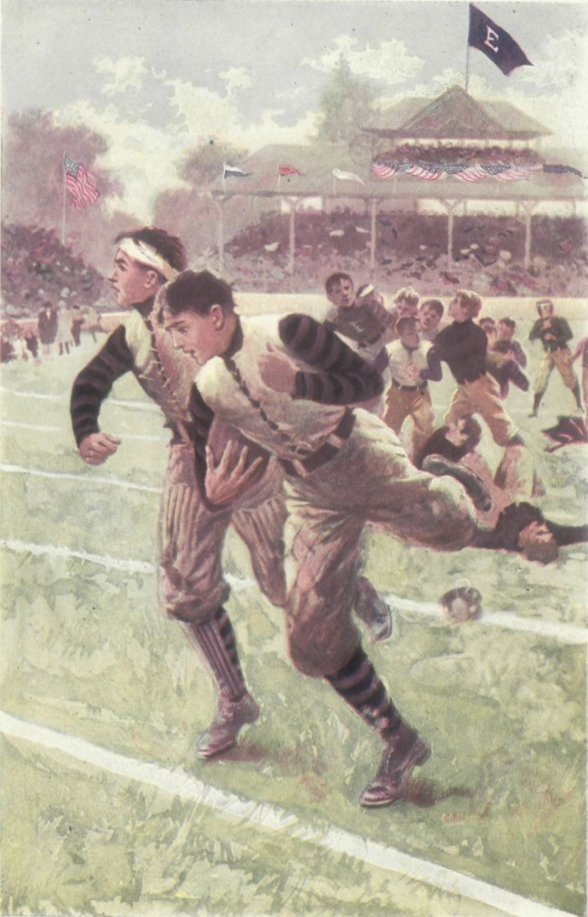 On the side-line, his hands in his pockets and his short brier pipe clenched firmly between his teeth, Gardiner, Hillton's head coach, watched grimly the tide of battle. Things had gone worse than he had anticipated. He had not hoped for too much--a tie would have satisfied him; a victory for Hillton had been beyond his expectations. St. Eustace far outweighed his team; her center was almost invulnerable and her back field was fast and heavy. But, despite the modesty of his expectations, Gardiner was disappointed. The plays that he had believed would prove to be ground-gainers had failed almost invariably. Neil Fletcher, the left half, on whom the head coach had placed the greatest reliance, had, with a single exception, failed to circle the ends for any distance. To be sure, the St. Eustace end rushes had proved more knowing than he had given them credit for being, and so the fault was, after all, not with Fletcher; but it was disappointing nevertheless.