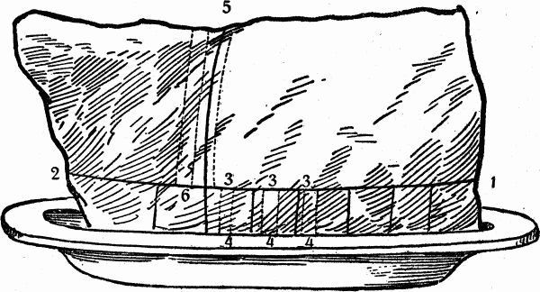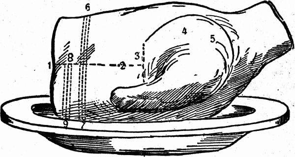 No. 4. The hind-knuckle or hock, used for stews, pot-pies, meat-pies.