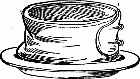 Vol au vents:—Patties of very light puff paste, made without a dish or mold, and filled with meat or preserves, etc.
