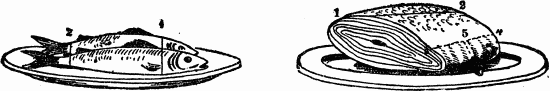 In carving fish, care should be taken to help it in perfect flakes; for if these are broken the beauty of the fish is lost. The carver should acquaint himself with the choicest parts and morsels; and to give each guest an equal share of those tidbits should be his maxim. Steel knives and forks should on no account be used in helping fish, as these are liable to impart a very disagreeable flavor. A fish-trowel of silver or plated silver is the proper article to use.