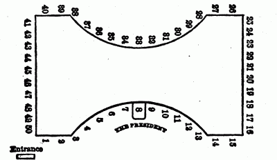 If, to conclude, one seats one's self properly at table and takes reason into account, one will do tolerably well. One must not pull one's chair too closely to the table, for the natural result of that is the inability to use one's knife and fork without inconveniencing one's neighbor; the elbows are to be held well in and close to one's side, which cannot be done if the chair is too near the board. One must not lie or lean along the table, nor rest one's arms upon it. Nor is one to touch any of the dishes; if a member of the family, one can exercise all the duties of hospitality through servants, and wherever there are servants, neither family nor guests are to pass or help from any dish. Finally, when rising from your chair leave it where it stands.