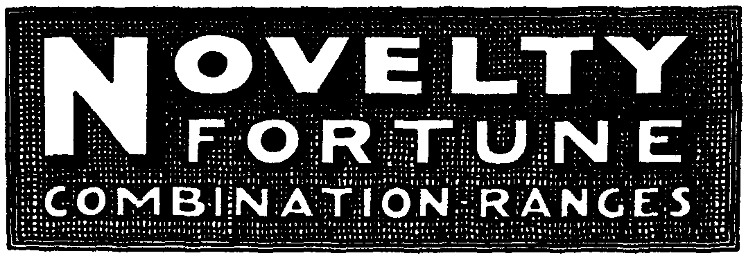 Range shown is Novelty Fortune E 318 Spacious Broiling Oven, White Enamel Pan with Rack. White Enamel Splasher. Spacious Cooking Top. Pouch feed for Coaling fire without removing lids. Duplex Grates. Deep Ash Pit. Large Gas Oven. Front Oven Burner. Large Gas Cooking Top. Burners operate from front of range. Full 18" coal oven. Drop oven doors enamel trimmed. Nickelled Brackets. Beautiful—Sturdy—Efficient. |