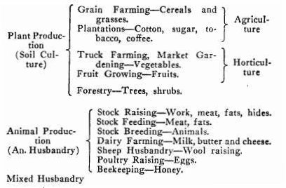If the industrial activities of the world be divided into farming, mining, manufacturing, trade and transportation, it will be noted at once that farming is the only one which deals with living things. In fact, the definition of agriculture, in its broadest sense, is the economic production of living things. The farmer is thus brought face to face with some of the most difficult and intricate problems with which the human race has to grapple. It is this fact that makes 7 farming, in some ways, the most uncertain as well as the most fascinating occupation known to man. The fact that the farmer is dealing with living things puts his occupation in a class by itself for a number of reasons, one of which is germane to the subject of this chapter.
