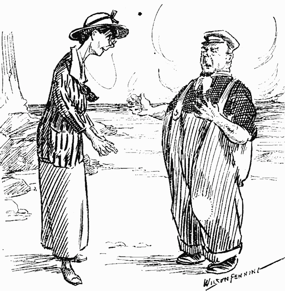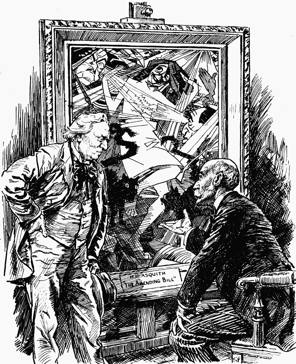 The Gentlewoman, by the way, which is publishing a series of articles entitled "Woman's Work at the 1914 Academy," omits to show us photos of Mr. Sargent's and Mr. Clausen's paintings after certain women had worked upon them.