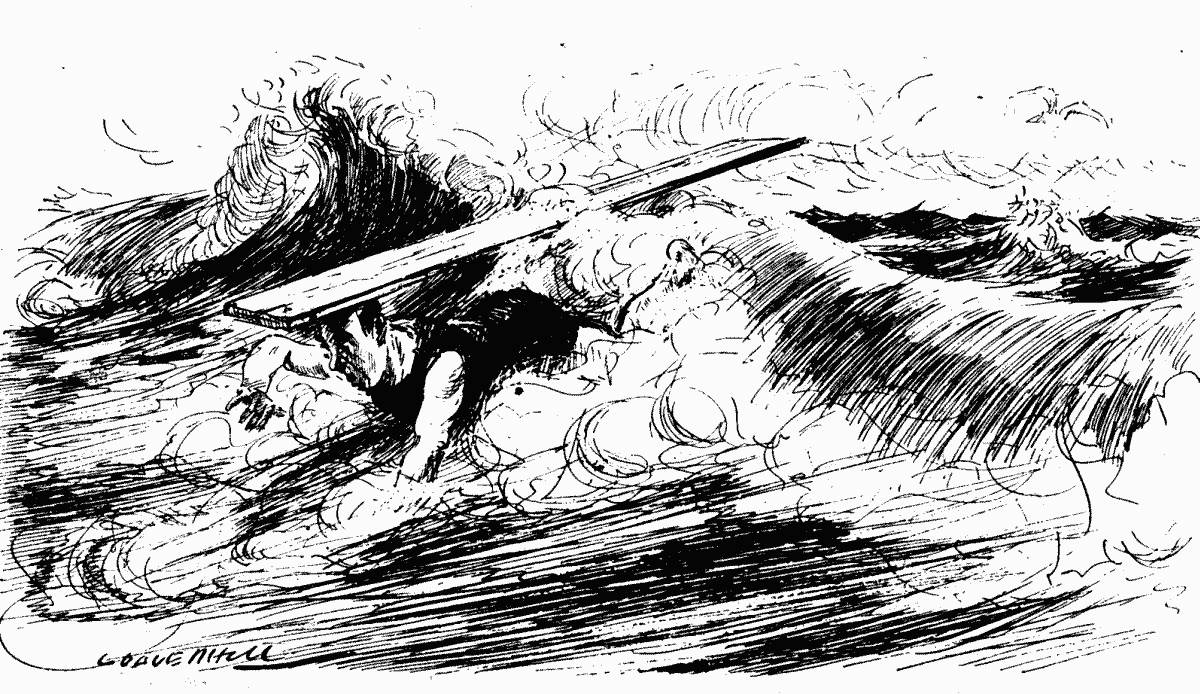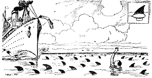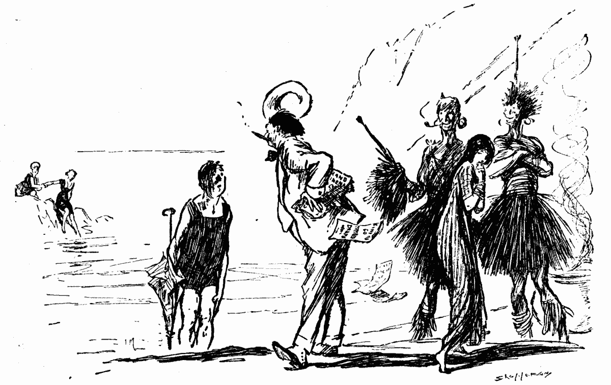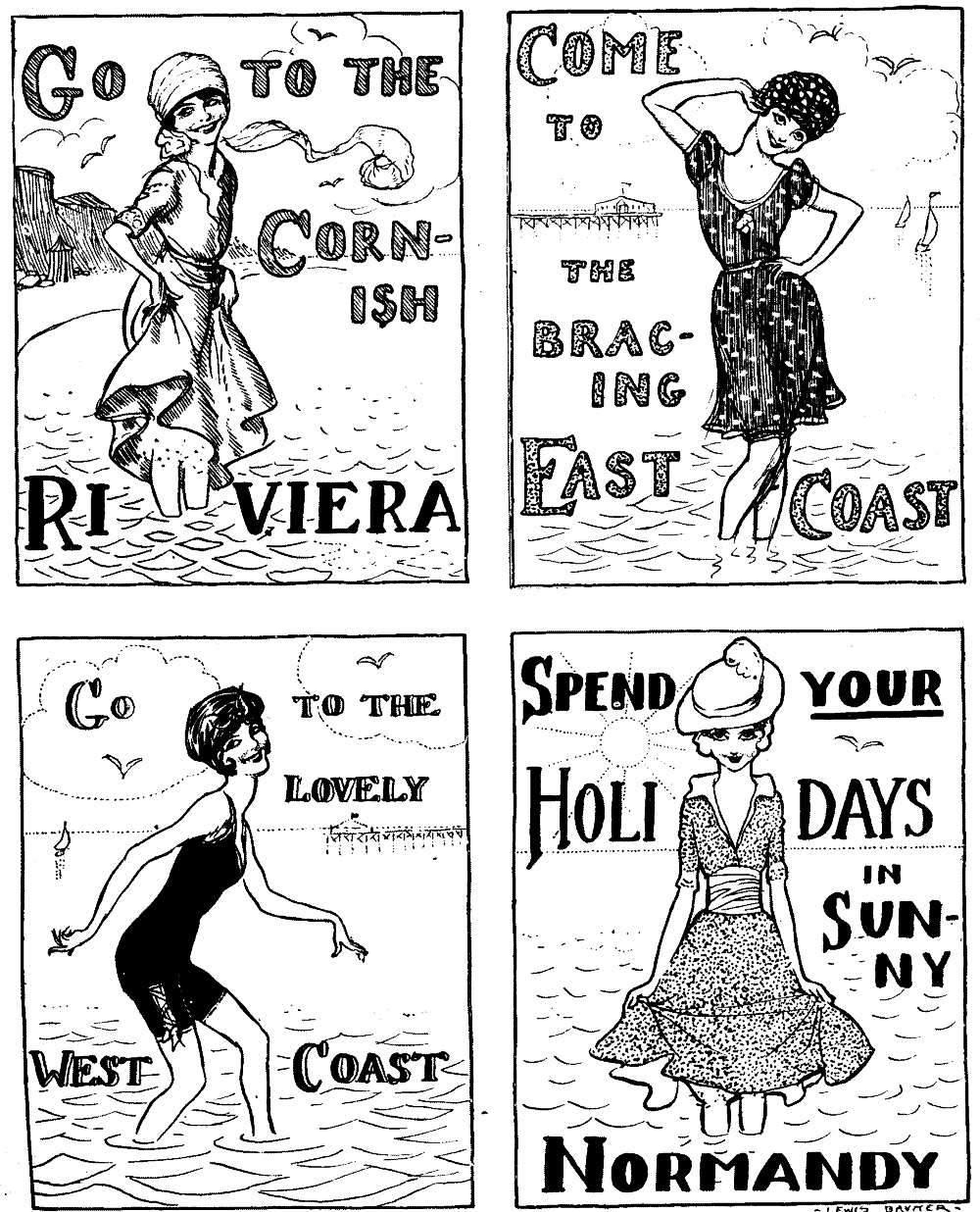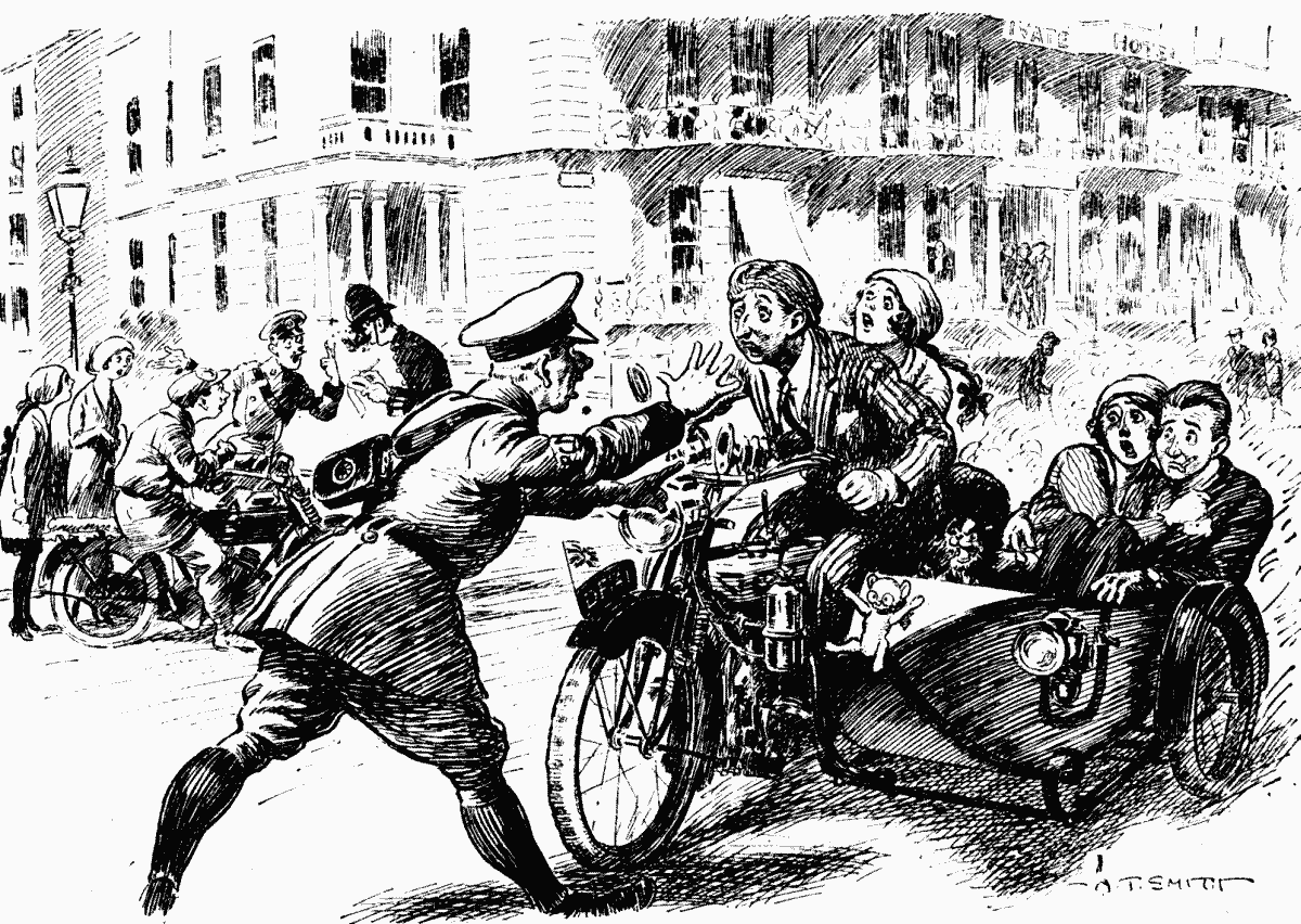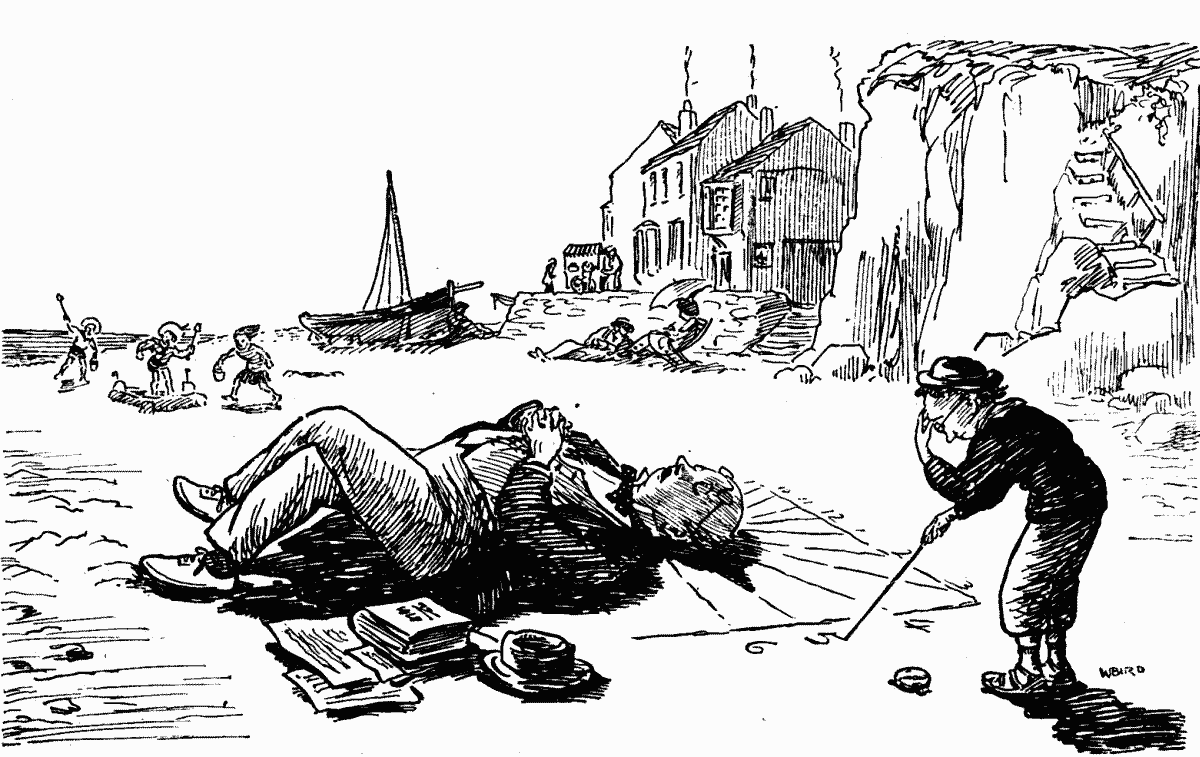 A visitor to Scarborough nearly lost his motor-car in the sands at Filey last week: it sank up to the bonnet and was washed by the sea before it was hauled to safety by four horses. Neptune is said to have been not a little annoyed at the car's escape, as he realises that his old chariot drawn by sea-horses is now sadly démodé.