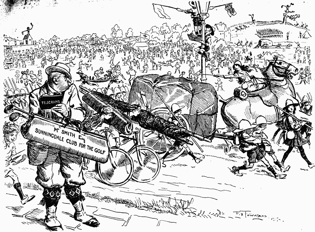 [There was a short interval here when the supporters of each party gathered round and gave advice and encouragement. The lady seemed as fresh as a fiddle, but the man was very exhausted and had to have a spirituous stimulant. After a quarter-of-an-hour's interval the game was resumed.]
