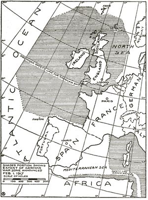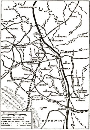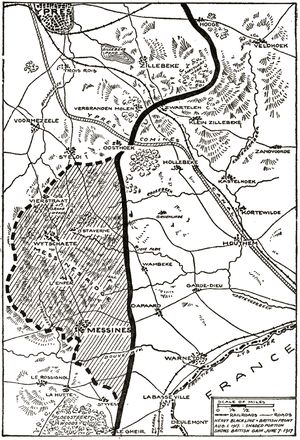 The British attack on the Germans around Guillemont, which took place as previously noted on August 8, 1916, was at first successful. A section of the troops carried some trenches, and then pushing on gained a useful piece of ground south of Guillemont with few casualties. Another (the left) section of British troops were unable to proceed farther on account of the darkness. Another section, owing to miscalculation, swept through the German trenches straight into the village of Guillemont, where they lost their direction amid the ruins and confusion. Working their way through the shattered streets they proceeded to dig themselves in when they had reached the far northeast corner of the place. With enemies all around them, and the breadth of the ruined village between them and their friends, the adventure could have but one conclusion. A few of the men succeeded in getting back to the British lines, but the remainder fell into the hands of the enemy.[Back to Contents]