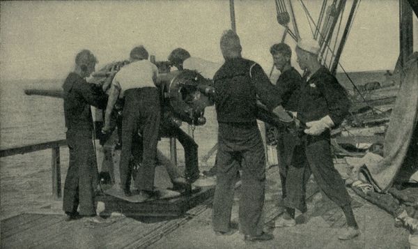 At first the Germans thought they could rush a "tank" as they would a fort, and lost heavily in such futile attacks; they could (p. 022) make no impression on the steel "hide" of the monsters. Once astride a trench, the guns of the tank could rake right and left, mowing down the defenders whose volleys pattered harmlessly on the steel plates of the war engine.
