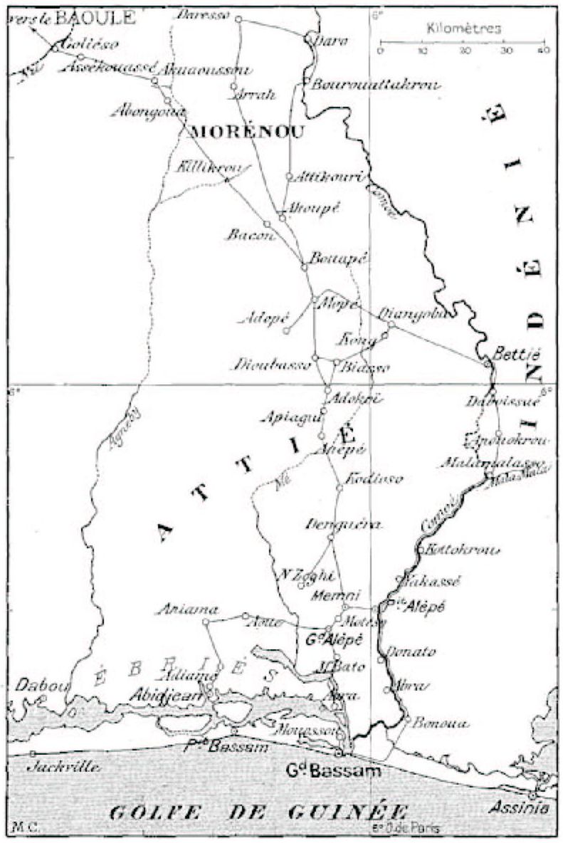 Note 4: Je ne puis cependant oublier les bons soins de M. Vaillant, constructeur et directeur du warf de Grand-Bassam, qui fut toujours pour moi un excellent ami.[Retour au texte principal]