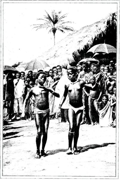 Note 3: Il m'a été donné d'observer très fréquemment dans la forêt, surtout aux environs de Adokoï, Mopé, l'affection déjà signalée sous le nom de «goundou ou anakhré», par le Dr Maclaud. Le malade qui en est atteint présente une tumeur osseuse de chaque côté de la racine du nez; cette tumeur, augmentant peu à peu de volume, en arrive à obstruer quelquefois la vision. L'origine et la cause de cette affection sont encore inconnues des indigènes, qui ne paraissent pas la redouter et se contentent d'en rire.[Retour au texte principal]