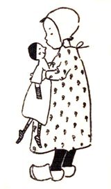 One day Sister Agatha told Mary she might get out of bed; she was carefully wrapped in a dressing-gown and a blanket and carried to a comfortable arm-chair. On her left foot she wore a pink woollen shoe, but the other foot looked so clumsy in its great bandages, that Sister Agatha covered it over.