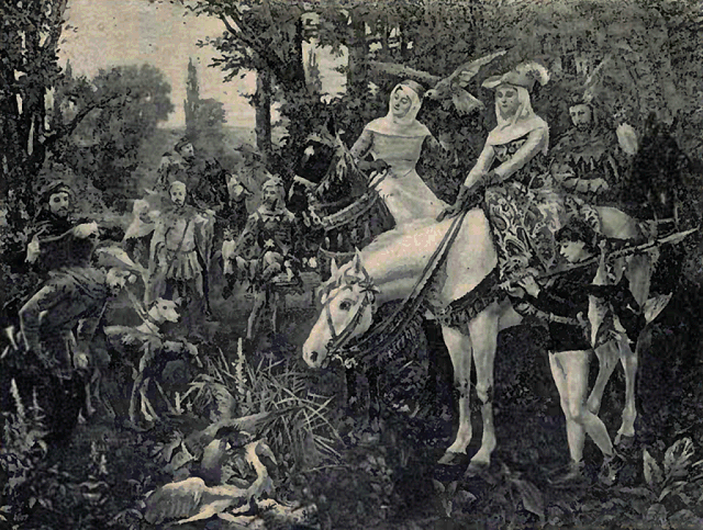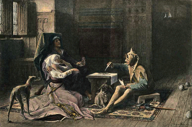 Nevertheless, the satanic livery was never utterly thrown aside; and clothes were not the only things satanic about the new queen. Constance, high-tempered and energetic, reigned over France through or in spite of King Robert. Coming of a forceful and warlike race, she must have found many things distasteful in the weakness and superstition which were the chief traits she noted in her husband. She and her kinsfolk left him free to compose hymns, while they ruled France. But when one of his favorites, Hugues de Beauvais, whom he had made count of the palace, suggested to Robert that he might get rid of Constance and send for the ever-regretted Bertha, Constance notified her strenuous uncle Foulques. Foulques promptly despatched a dozen brave knights, with orders to slay Hugues whenever and wherever they found him: they found him and murdered him in the very presence of the king. Robert was too weak to resist effectively, made his peace with the queen, and gave himself up more and more to religious devotions.