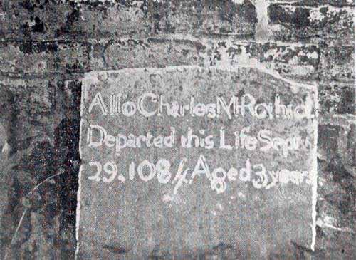 [60] One tradition is that this drug store was at the corner of Princess Ann and Amelia streets, where Mr. John Stansbury Wallace lives; but another tradition locates it at the corner of Main and Amelia, most likely adjoining the corner house. This tradition is strengthened by finding, some time ago, while repairing the house, many old papers and other things that must have come from a drug store, and no other such store was ever known at that place.