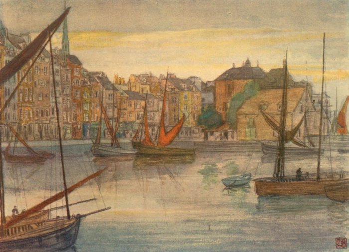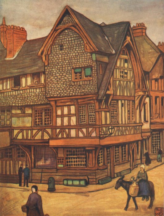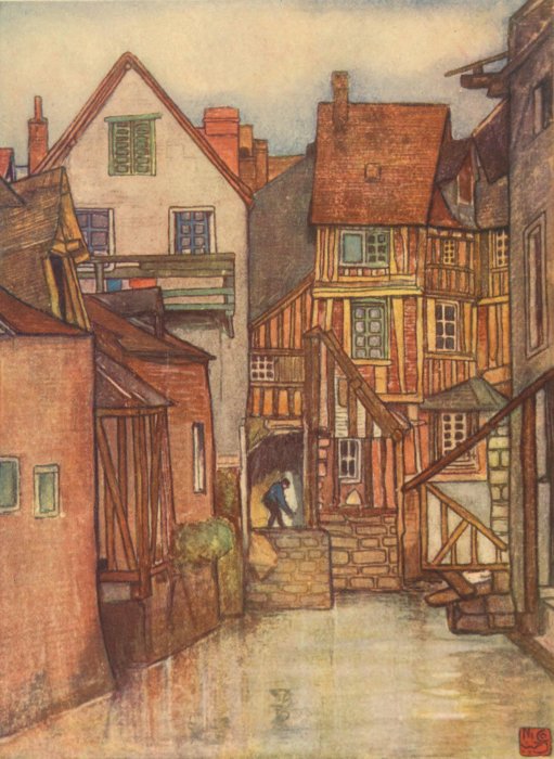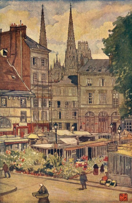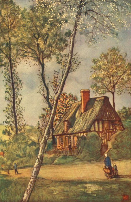Pen and brush are both necessary in the attempt to give an impression of a country; word-painting for the brain, colour for the eye. Yet even then there must be gaps and a sad lack of completeness, which is felt by no one more than by the coadjutors who have produced this book. There are so many aspects under which a country may be seen. In the case of Normandy, for instance, one man looks for magnificent architecture alone, another for country scenes, another for peasant life, and each and all will cavil at a book which does not cater for their particular taste. Cavil they must; the artist and author here have tried—knowing well how far short of the ideal they have fallen—to show Normandy as it appeared to them, and the matter must be coloured by their personalities. Thus they plead for leniency, on the ground that no one person’s view can ever exactly be that which satisfies another.