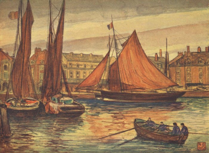 If we pass down one of the narrow streets to the east of the church, we come quite suddenly upon a scene of a different order. Here is the basin where the steamers lie, and the swing-bridge which leads to the fishermen s quarter, Le Pollet, one of the two places in Normandy where the Celtic influence still lingers. There are some quaint superstitions and ideas held by these men, but they are not ready to speak of them. They are religious, and would not think of letting a boat go out unblessed. One of the songs which is chanted at the lighting of a candle in the hold before a boat puts out to sea, is as follows:—