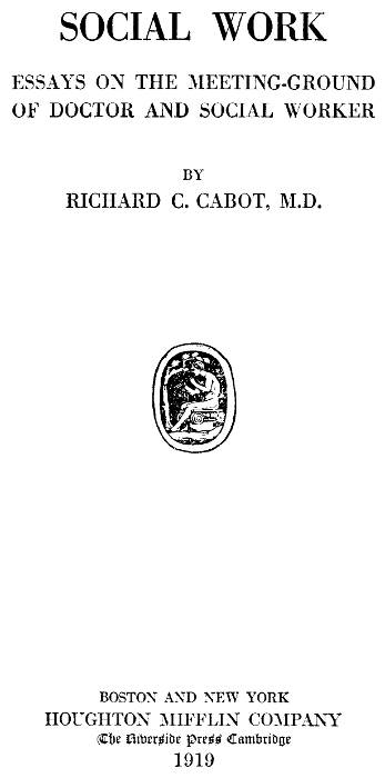 SOCIAL WORK. Essays on the Meeting-Ground of Doctor and Social Worker.