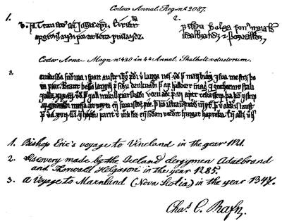 Illustrations: Behring’s Sea and Adjacent Waters, 77; Buache’s Map of the North Pacific and Fusang, 79; Ruins of the Church at Kakortok, 86; Fac-simile of a Saga Manuscript and Autograph of C. C. Rafn, 87; Ruin at Kakortok, 88; Map of Julianehaab, 89; Portrait of Rafn, 90; Title-page of Historia Vinlandiæ Antiguæ per Thormodum Torfæum, 91; Rafn’s Map of Norse America, 95; Rafn’s Map of Vinland (New England), 100; View of Dighton Rock, 101; Copies of its Inscription, 103; Henrik Rink, 106; Fac-simile of the Title-page of Hans Egede’s Det gamle Gronlands nye Perlustration, 108; A British Ship of the Time of Edward I, 110; Richard H. Major, 112; Baron Nordenskjöld, 113. | |