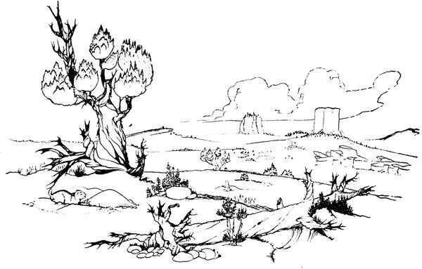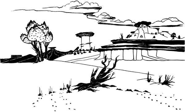 artist's own, and is neither the flat stylized drawing