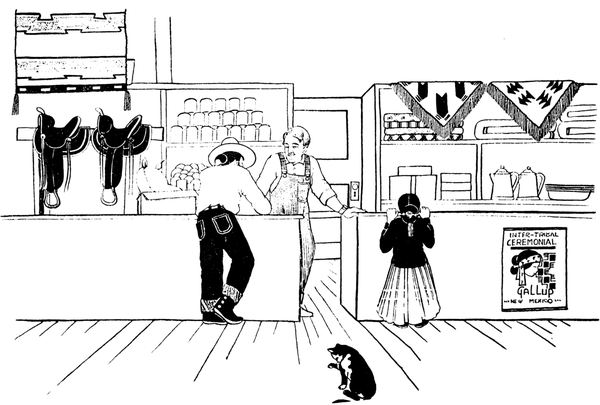 by Hoke Denetsosie, a full-blood Navajo artist, are used.