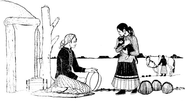 book is illustrated by a Pueblo artist, Velerio Herrera, and