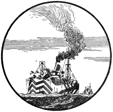 The account given by the survivors was full of interest. They were forty-one in number, including a captain-lieutenant, a first-lieutenant, a lieutenant and a chief-engineer. The boat had come straight from her base for the express purpose of attacking this particular convoy, and had been lying in wait for two days, paying no attention to any other ships. She carried twelve torpedoes, and she carries them still, for not one had been fired when she went down. The291292 first depth-charge from Fanning had been practically a direct hit; it had wrecked her motors, diving gear, and oil leads, and sent her diving entirely out of control to a depth of 200 feet. The commanding officer thought at first that he would never be able to stop her, and that she would go on until the deep-sea pressure burst her sides in. He had only one possible course—he blew out all his four water-ballast tanks at once. This stopped the dive but brought the boat back to the surface with a rush and made her unmanageable. One witness in the destroyers says that she ‘leaped clear of the water like a breaching whale.’ It was then that Nicholson overtook her and dropped the second depth-charge; but even without this the end was inevitable, for in her porpoise-like gambols she could have been shot or rammed with certainty. Given a sufficient supply of patrol boats and depth-charges in the submarine chase there will be but few and evil days for the hunted. The American naval authorities have grasped this truth at once and founded a building policy upon it. The boats will be provided in any number, and if they are handled as the Fanning and Nicholson were handled, the U-boat will spend her short life in dodging a perpetual bombardment.