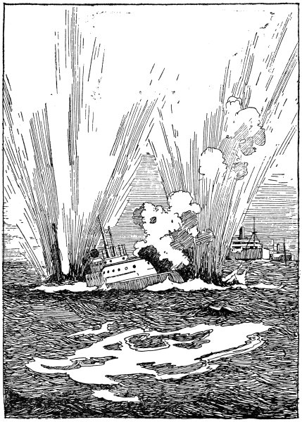 One of them, must have thought she had hit it off, for a tremendous explosion shook the submarine—a depth-charge had been dropped not far behind her, shaking her stern violently. In her steering flat, the first-lieutenant and his men were lifted bodily off their feet. The commander continued his dive, and to his great comfort took bottom at 125 feet on the gauge.