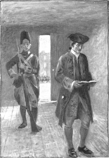 Mr. James Nesbit, merchant of Philadelphia, stood leaning against the long, polished desk at the farther end of which two clerks were hard at work copying entries into a ponderous ledger. On Mr. Nesbit’s face there was a look of preoccupation. He drew a deep breath, rapped nervously with his finger on the desk, and, reaching behind his ear, under the folds of his heavy white wig, threw down a large quill pen. Then, taking a big silver snuff-box out of his pocket, he helped himself neatly to a pinch of snuff. Having done this he waited anxiously, as if the expected sneeze might jar his mind into better working order. It seemed to answer, for, after a preliminary rumbling gasp and an explosion, he blew his nose violently, and turning addressed one of the clerks.