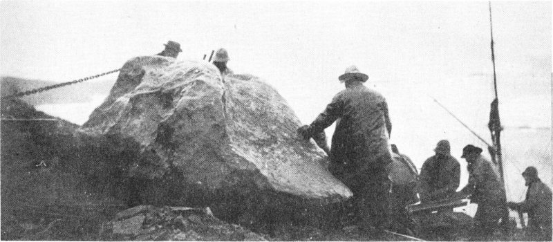 COURTESY OF AMERICAN MUSEUM OF NATURAL HISTORY Peary’s photograph of the Cape York meteorite as it was being moved for loading aboard his ship.