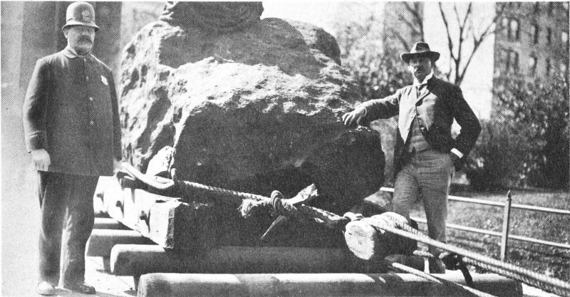J. OTIS WHEELOCK PHOTO COURTESY OF AMERICAN MUSEUM OF NATURAL HISTORY Man and boy carrying off the famous “purloined” Willamette meteorite on a homemade dolly car with wheels of tree-trunk sections. Note hole piercing this 14-ton chunk of iron.