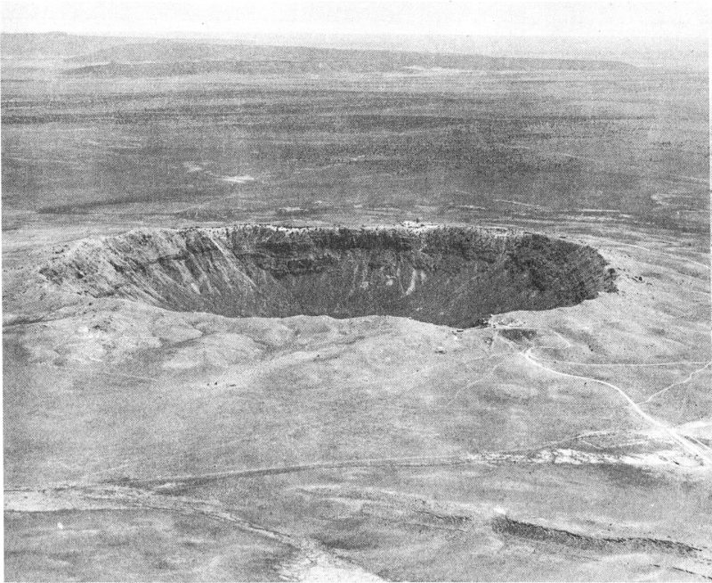 The first thing to be said on this subject is, of course, that not all holes in the ground, however large and impressive, were necessarily formed by the impact of meteorites. Features that resemble meteorite craters may result from certain ordinary earth-processes. For example, the rock layers underlying a particular area may be dissolved away by waters circulating beneath the surface of the ground. The overlying crust will eventually collapse into the empty space, and what geologists call a “sink hole” or a “sink” is formed. Many such sinks surround the genuine meteorite crater near Odessa, Texas, and at times have been mistaken for the real thing.