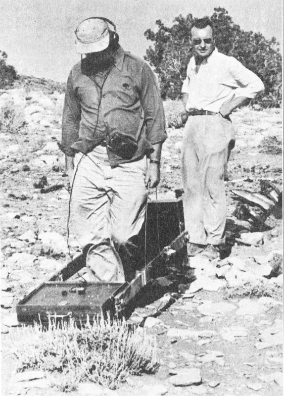 The first study of this type was made in May, 1948, at the Institute for Nuclear Studies of the University of Chicago (now the Enrico Fermi Institute). Scientists made radioactivity tests on samples of the Norton County meteorite donated for this purpose by the Institute of Meteoritics and air-expressed to Chicago because of the intense interest in the radioactivity question. In October, 1949, English investigators ran similar tests at the Londonderry Laboratory for Radiochemistry, Durham, England, on samples of the freshly fallen Beddgelert, North Wales, meteorite discussed on pp. 69-70. The results of these two pioneer studies were negative because the “Model-T” instruments available in 1948 and 1949 were not sensitive enough to detect the relatively low radioactivities present.