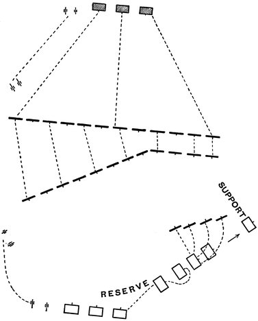Another time a squadron attacking was held up by wire whilst under fire, and began to come back; another squadron was led at a gallop through them. The irresolute squadron at once turned and followed them. The art is to loose the support at the right moment and with due emphasis.