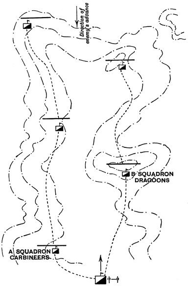 32 General Sir D. Haig’s 2nd Staff Ride, p. 11: “With a force of greater strength than half a squadron, defiles should never be passed at a faster pace than the trot in order that each unit of the force may keep well closed up and the column be not unduly lengthened. After passing through, deployment should be made at a gallop so as to make room for units in rear.”