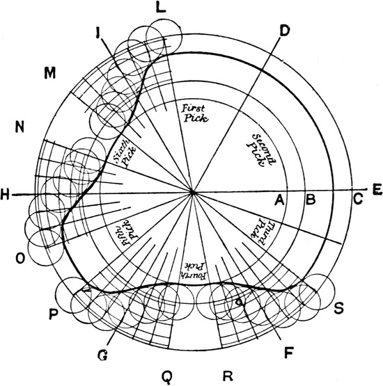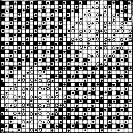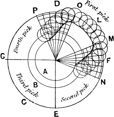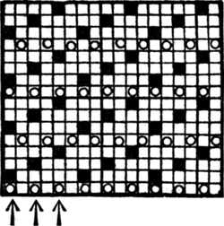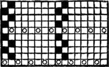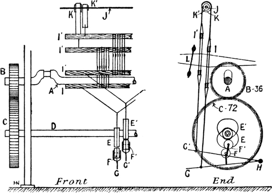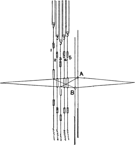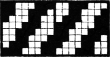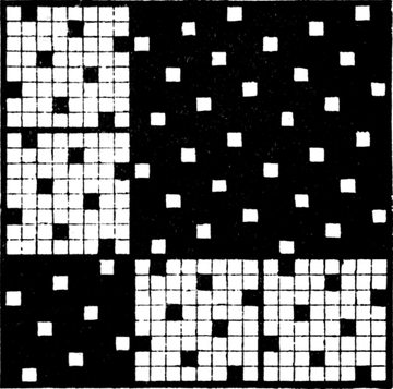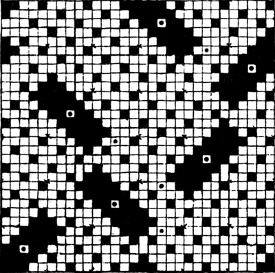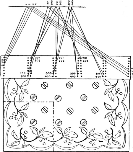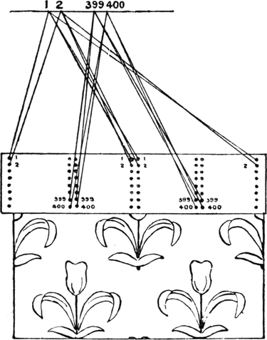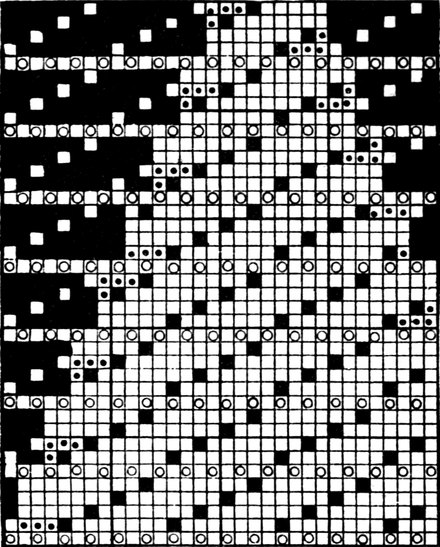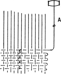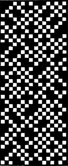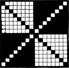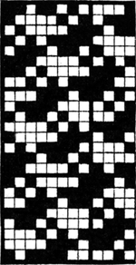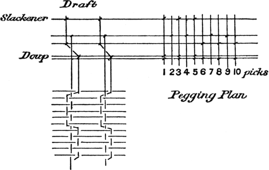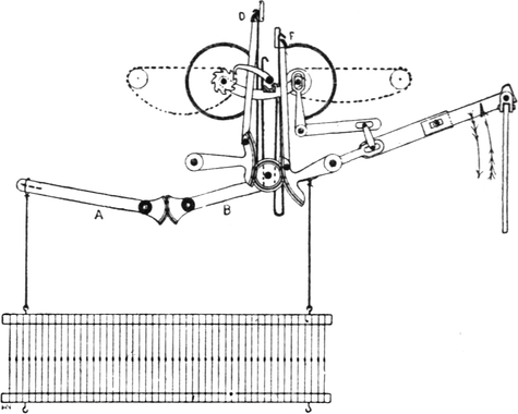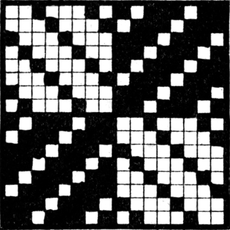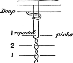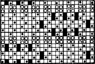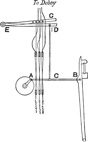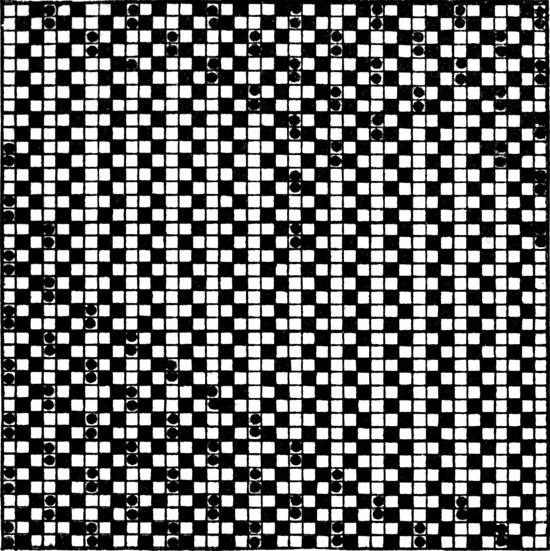 One advantage gained by a knowledge of the principle of[Pg 343] cloth “balance” is that the number of picks per inch which a given pattern or weave will take can easily be obtained by calculation. This is of great advantage to designers for Jacquard weaving, as it often occurs that a design is made and the cards cut for a pattern which will not admit of the required number of picks of the given counts being put in the cloth, which a slight alteration in the ground weave would have rendered possible.