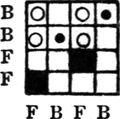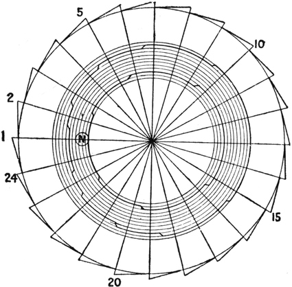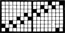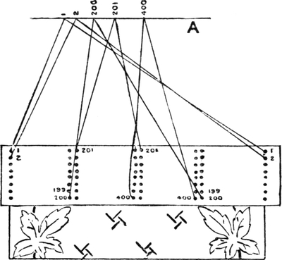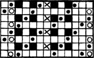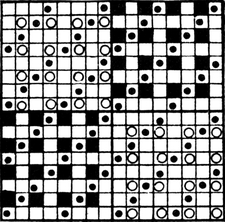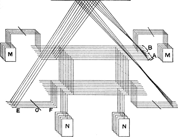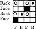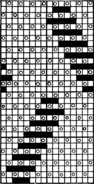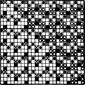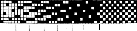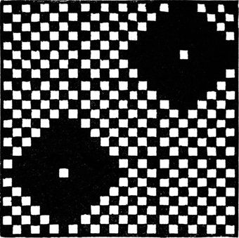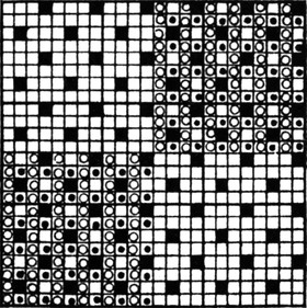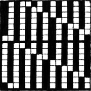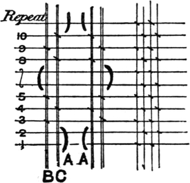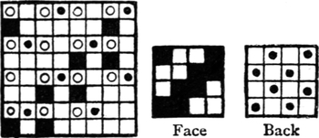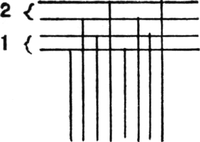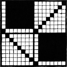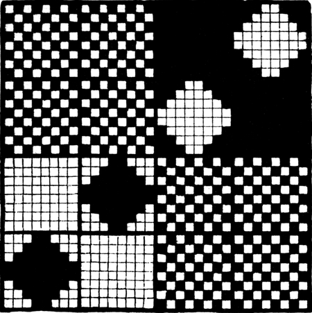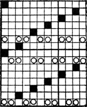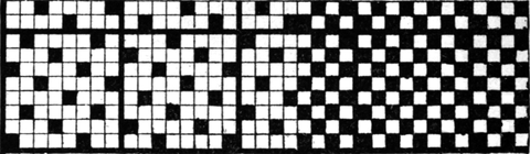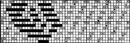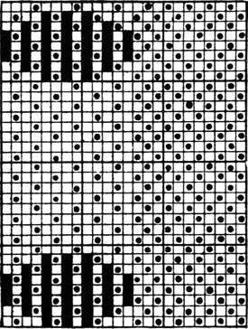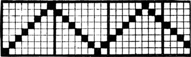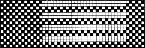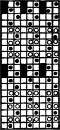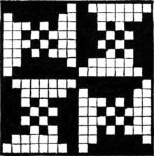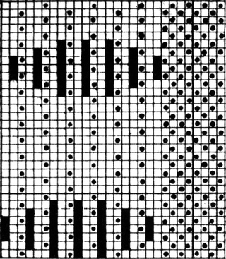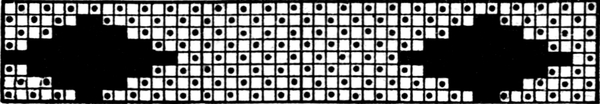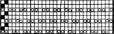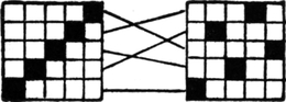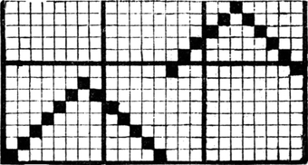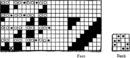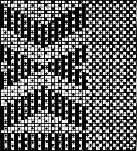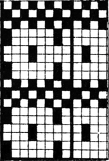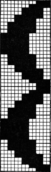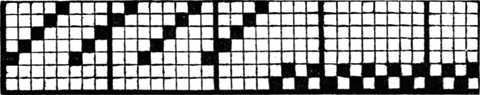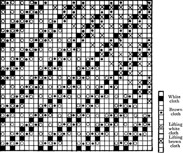 It must not be forgotten that it is necessary to take an equal number of ends of each pattern in this class of calculation. In more complex patterns it is often advisable to take the number of ends which is the L.C.M. of the ends in the two patterns in order to get a complete number of intersections in each case.