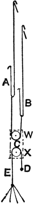 If one thread is four times as heavy as another, and if it is of the same density—which in these calculations is assumed, although it is not strictly correct—the diameters of the two threads will be as 2: 1. For example, looking at the tables, the diameter of a 60’s is seen to be the 1/213 of an inch, whilst the diameter of a thread four times the weight, viz. 15’s, is seen to be 1/106½ of an inch, or exactly twice the diameter of the 60’s thread.