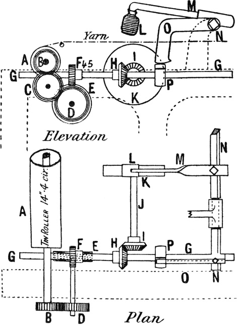 On referring to the table of diameters (p. 335), it will be found that a plain cloth with 78 threads of 32’s is “perfect,” and that a plain cloth with 55 threads of 16’s is also perfect. Therefore the above calculation is correct.