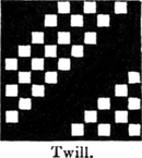 This may be proved correct by referring to the table of diameters on page 335, where it will be seen that a plain cloth with 82½ threads per inch of 36’s is “perfect,” and a “two and two” twill with 82½ threads of 20¼’s counts is equally perfect.