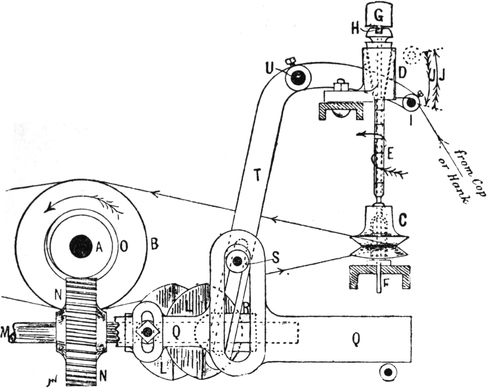 1. Winding yarn from cops, ring, or throstle bobbins on to warpers’ bobbins, by means of a “spindle” or “cop” winding machine.