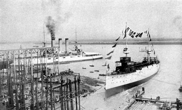 Upon the completion and delivery of these ships, Mr. Cramp had achieved the distinction of having done the greatest volume and highest value of ship-building for foreign accounts ever performed in an American shipyard. On their arrival at St. Petersburg, both ships were personally inspected by the Emperor, who was so pleased with the “Variag” that he ordered her detailed as escort to the Imperial yacht in a trip to Cherbourg.