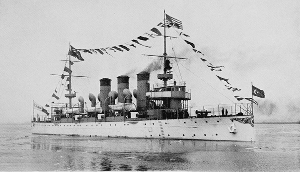 “(3) Four first-class armored cruisers of 9750 tons displacement and twenty knots speed at the Armstrong Works; one at the Vulcan Works, Stettin, Germany, and one in France.