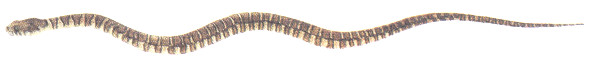 In feeding, the snake does not chew its food, but swallows it whole. The jaws are wonderfully adapted for this purpose, having the bones on each side of the jaws attached to their mates on the other side by an elastic ligament, and the upper and lower jaws also joined by such an attachment. This allows the jaws to be spread apart and lowered, making an opening capable of taking in a food item actually larger in diameter than the snake! The teeth of both the upper and lower jaws are recurved, pointing inward, and as each section of the jaw can work independently, one side secures its grip while the other side moves forward. Thus, the snake actually crawls around its food.