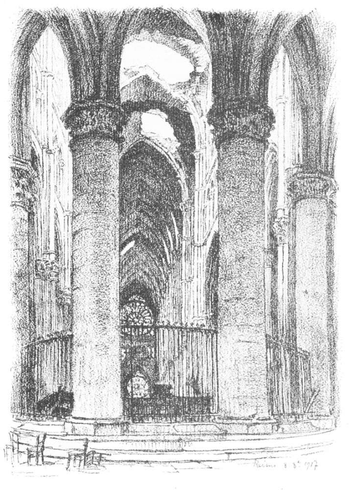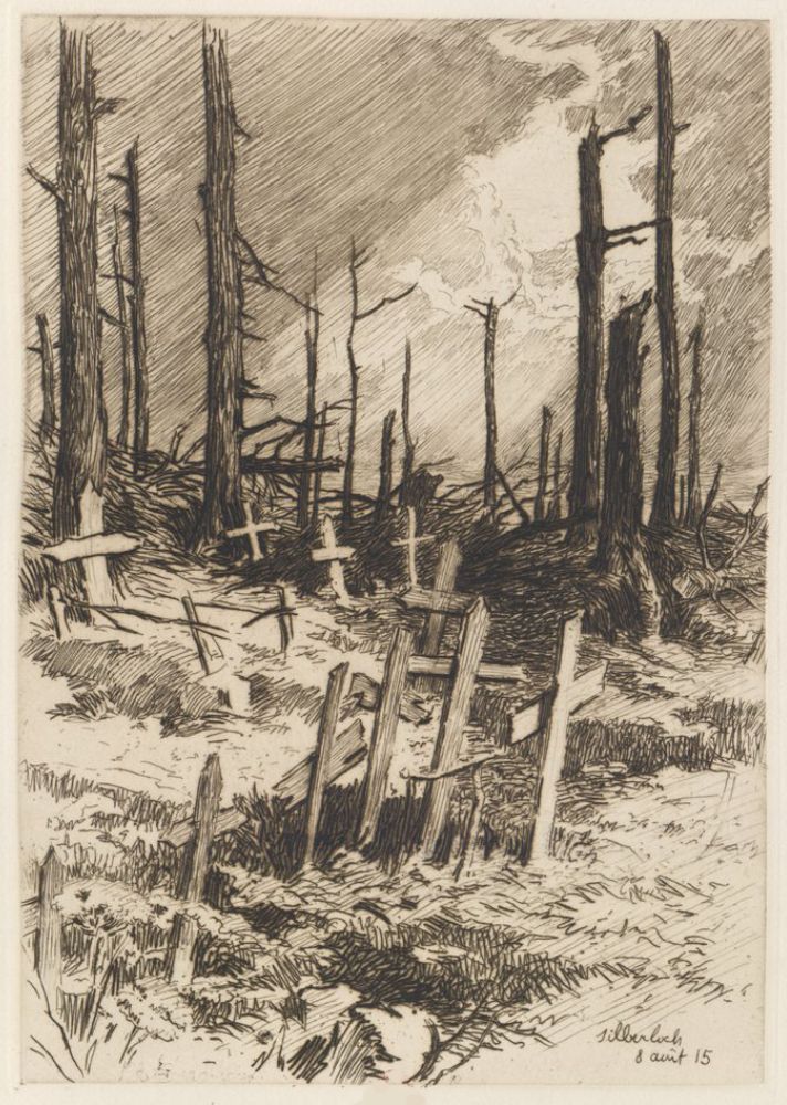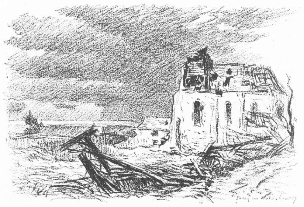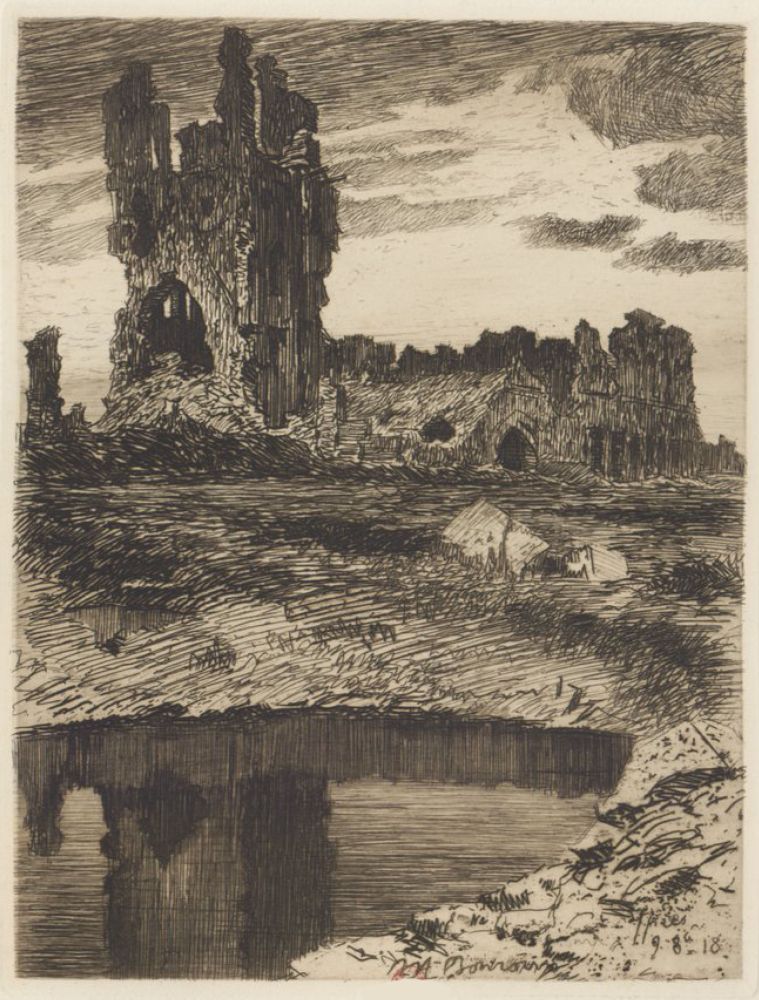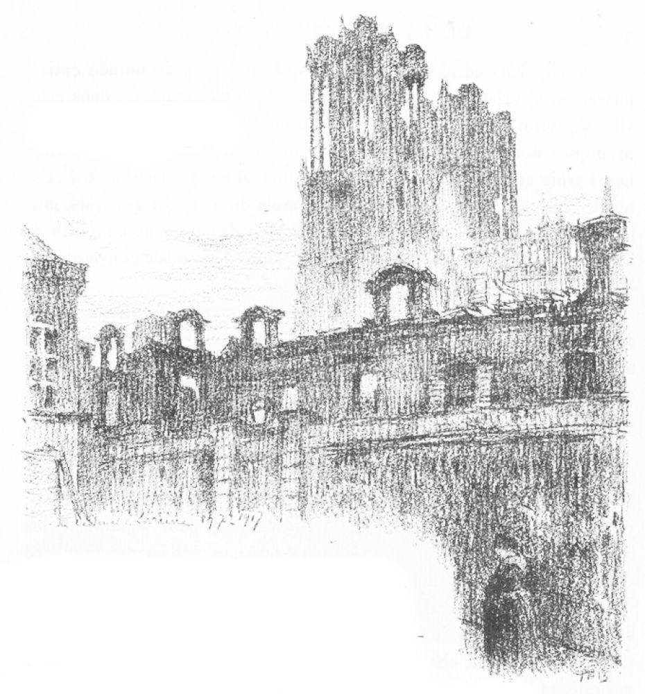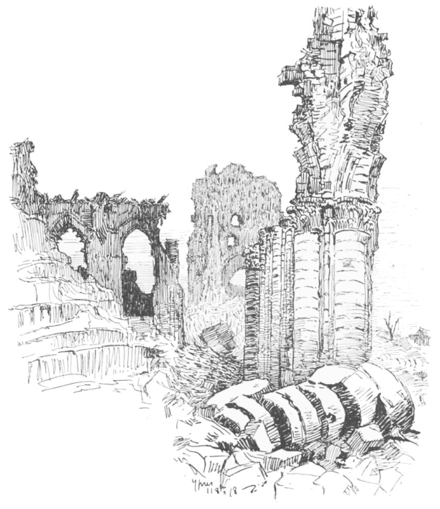 La guerre n’est qu’une convulsion, qui bouleverse les êtres et les choses, mais une convulsion ne dure pas. A la place des ruines, dont le burin du graveur trace la figure pathétique, d’autres édifices s’élèveront un jour à nouveau. Et devant même que d’autres pierres aient remplacé les pierres détruites, la nature la première n’a-t-elle pas rétabli son harmonie éternelle, comblant les tranchées et les trous d’obus? Les champs de désolation et de mort ne s’apprêtent-ils pas pour les moissons de demain?
