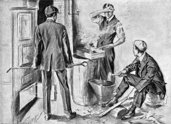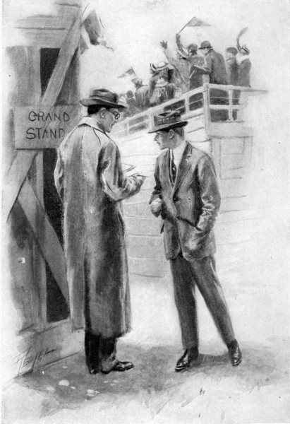 “Got you! But wait until I get some of this mess picked up. How’s that for a swell suit of glad rags, Gil?” Poke held up the jacket for inspection. It was perceptibly green in color and decidedly “loud” in style. Gil grunted.