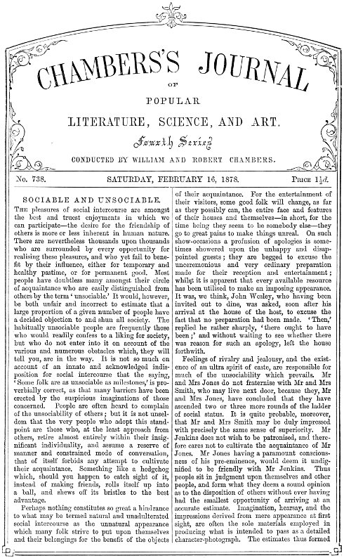 Title: Chambers's Journal of Popular Literature, Science, and Art, No. 738, February 16, 1878