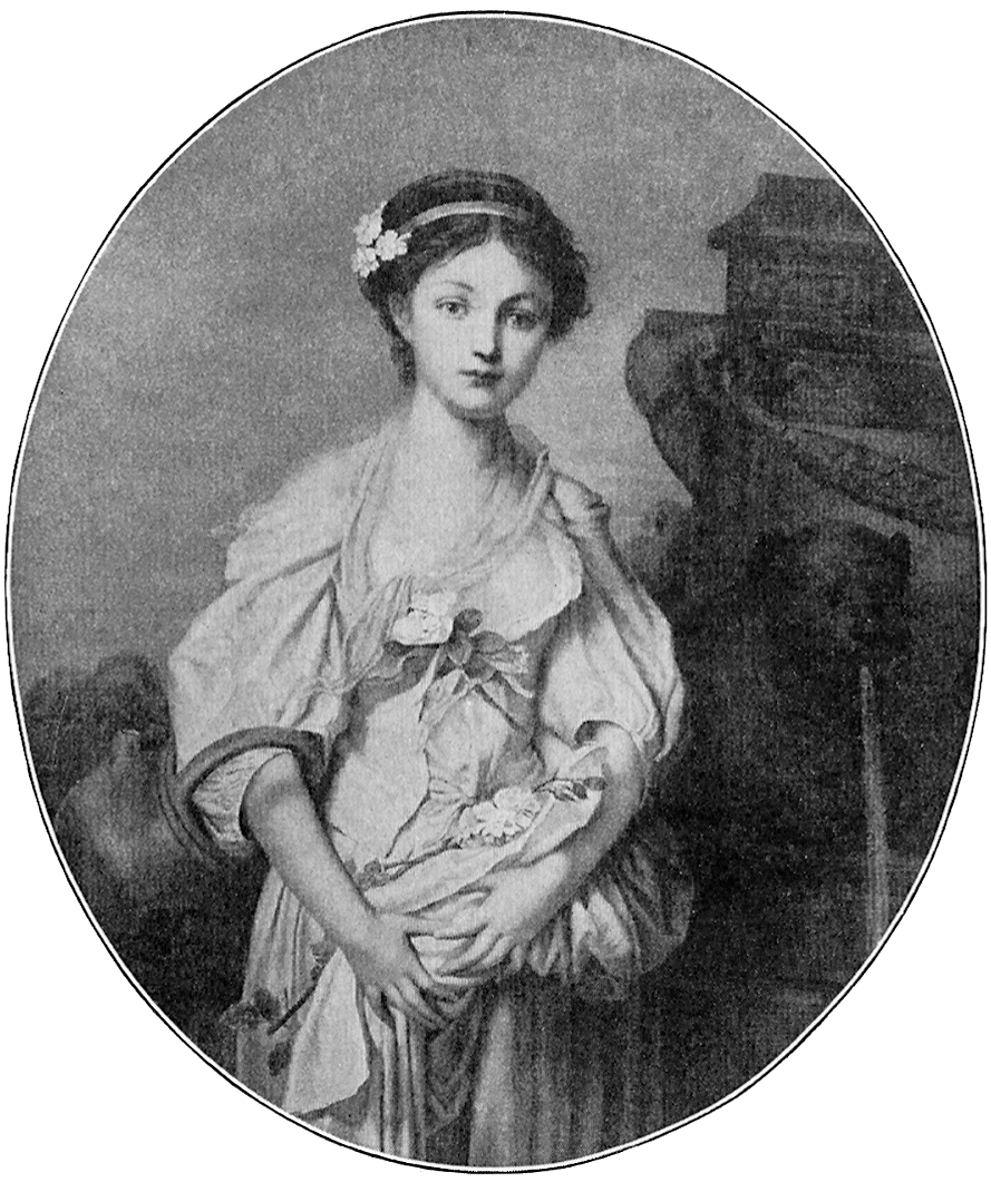 One evening she dressed her little daughter in a ragged dress and bonnet to make her look like a poor peasant child. She herself wore an old dress, with a handkerchief over her head to hide her face like a veil. They slipped quietly out of the house and into an omnibus that was waiting for them and drove as quickly as possible through the crowded streets, out of the city. No one recognized them, and they went to Italy, where they traveled about the country for many years. Mother and daughter were very popular and were entertained royally wherever they went. But Madame Lebrun never laid aside her painting. Even when she was eighty years old she painted a beautiful portrait of her little niece, who must have reminded her of the little daughter in this picture.