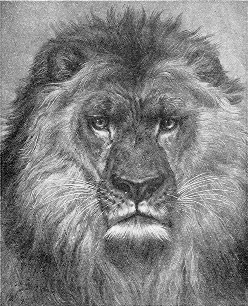This is one of the pictures she painted of the lion. She called him “Nero,” and was so 46kind to him that after a while he became quite tame. The lioness was always wild, but good old Nero soon became so gentle that Rosa Bonheur could pet him and even go into his cage.